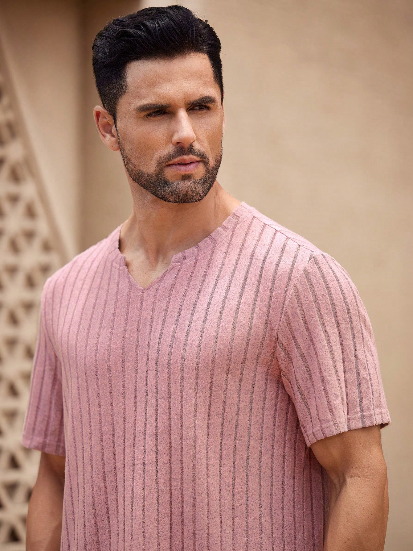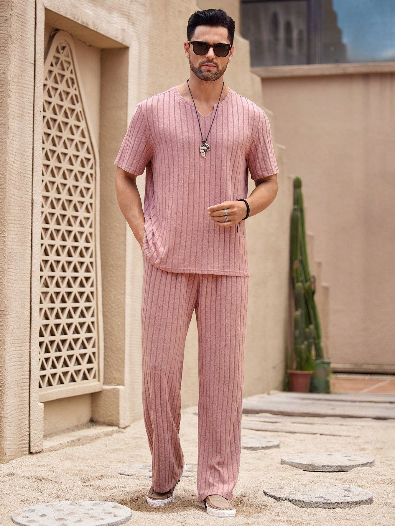 Manfinity KASUA 2pcs/Set Men??s Notched Neck Short Sleeve T-Shirt And Straight-Leg Casual Pants Outfit