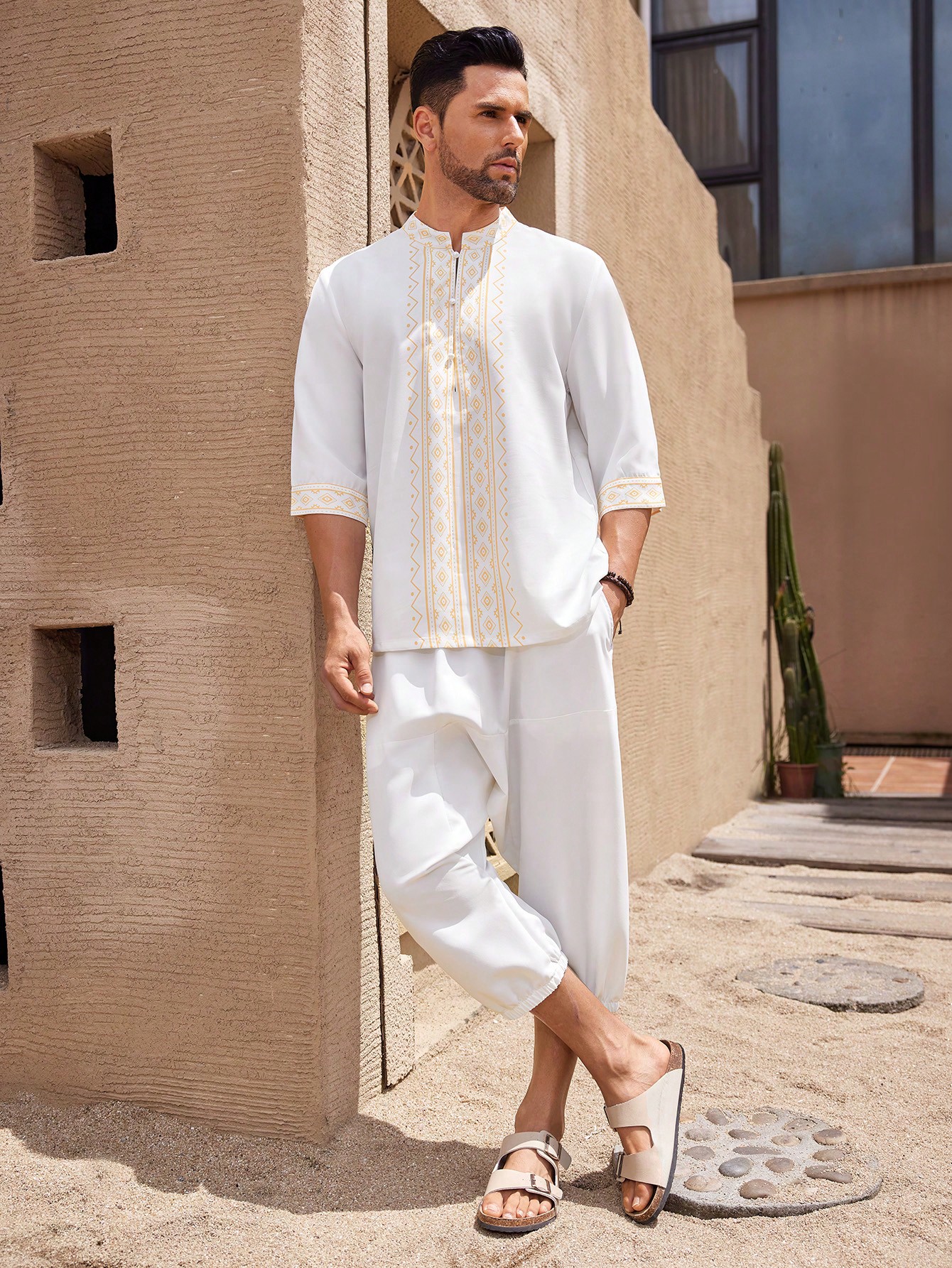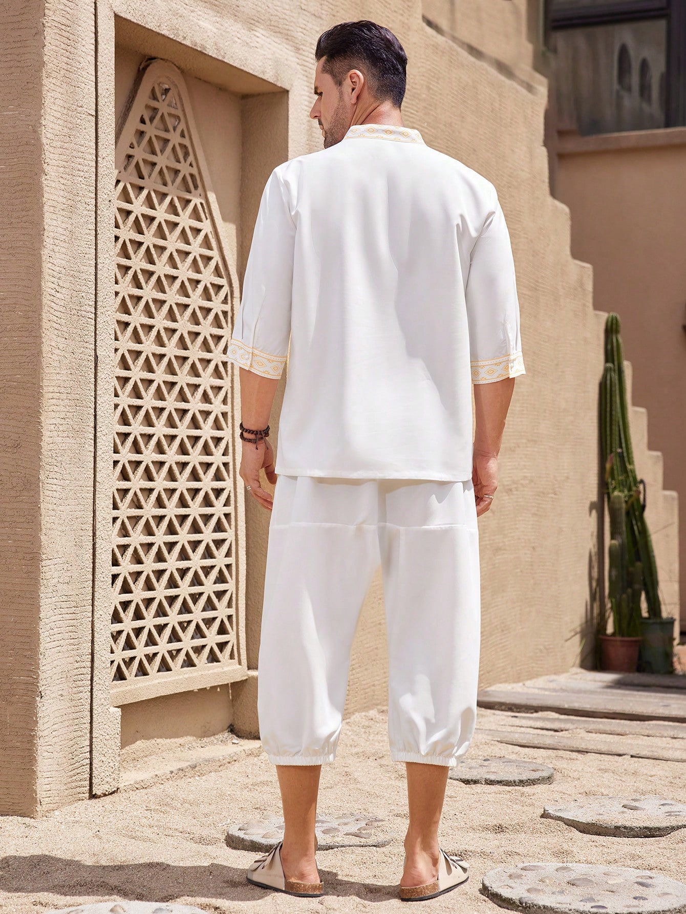 Be the first to review “Manfinity KASUA Men??s Geometric Print Stand Collar Shirt And Pocket Shorts Casual 2-Piece Set”