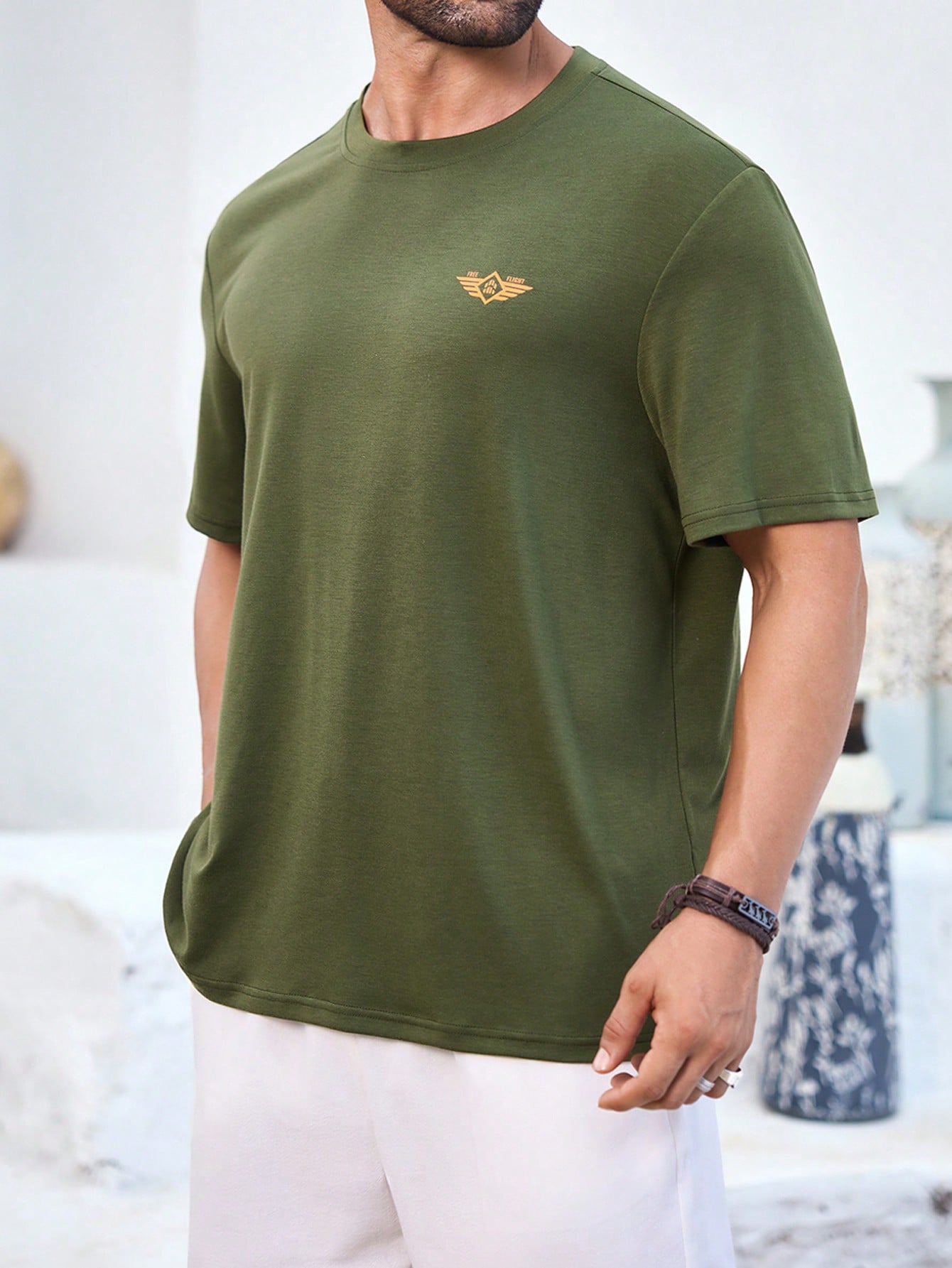 Manfinity KASUA Men??s Green T-Shirt, Casual Daily Floral Print, Comfortable & Breathable