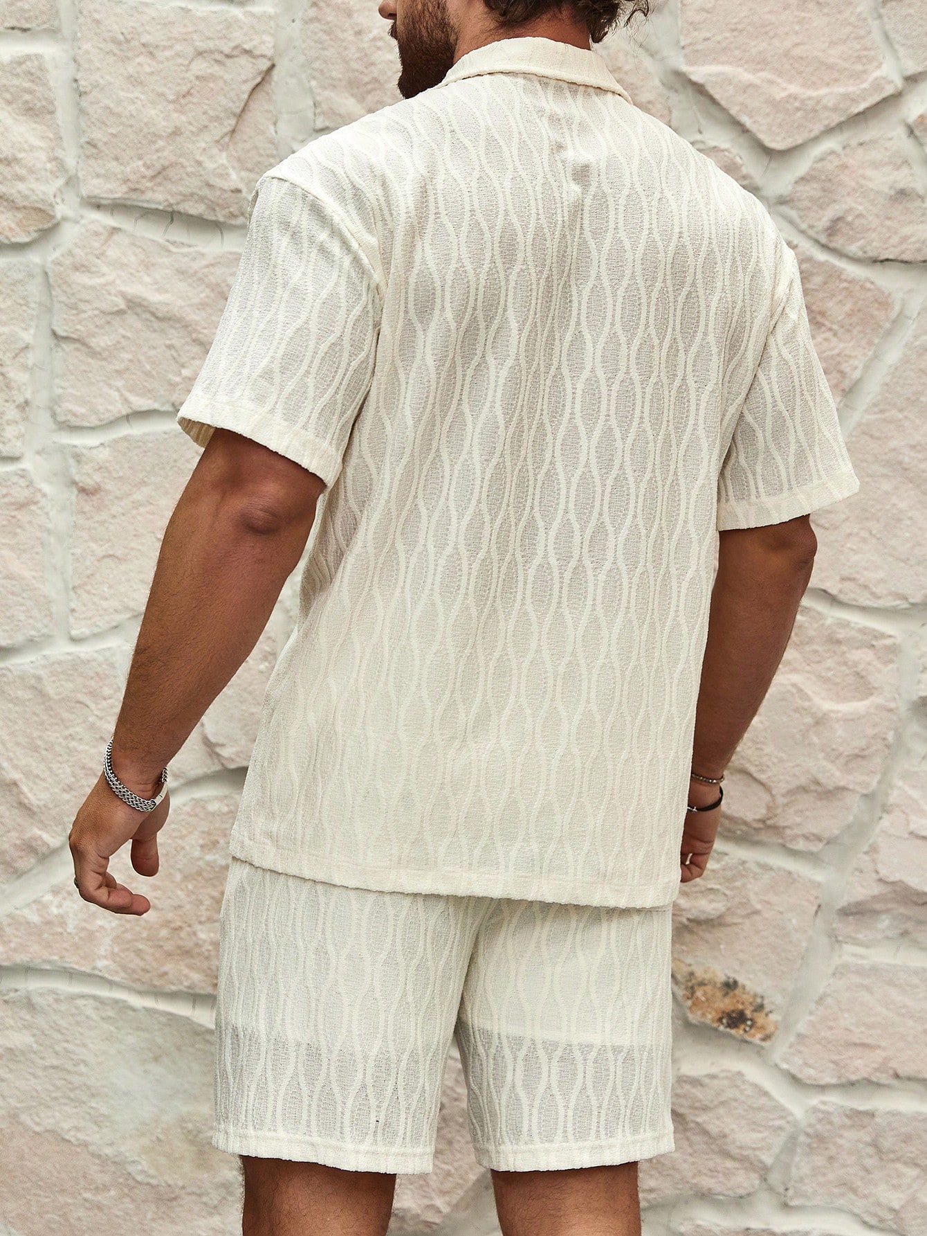 Manfinity KASUA Men??s Monochrome Short Sleeve Top And Shorts Two Piece Set With Single Breasted Closure , Going Out , Husband , Rave Outfit , Plain , Casual