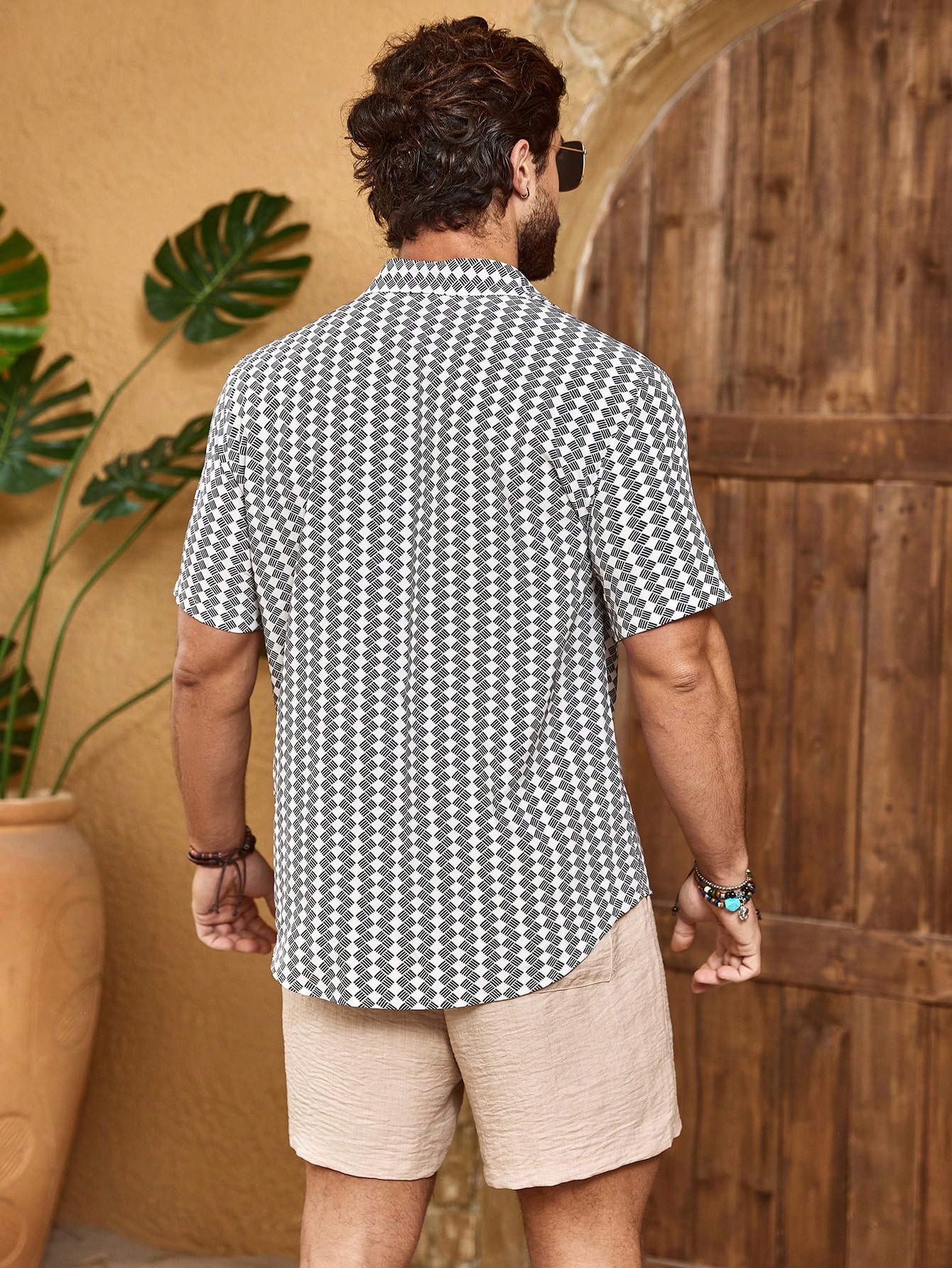 Manfinity KASUA Men??s Short Sleeve Casual Shirt, Button Up Collar Graphic Shirt For Vacation