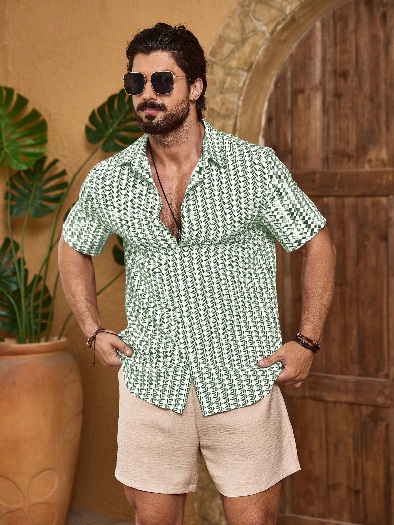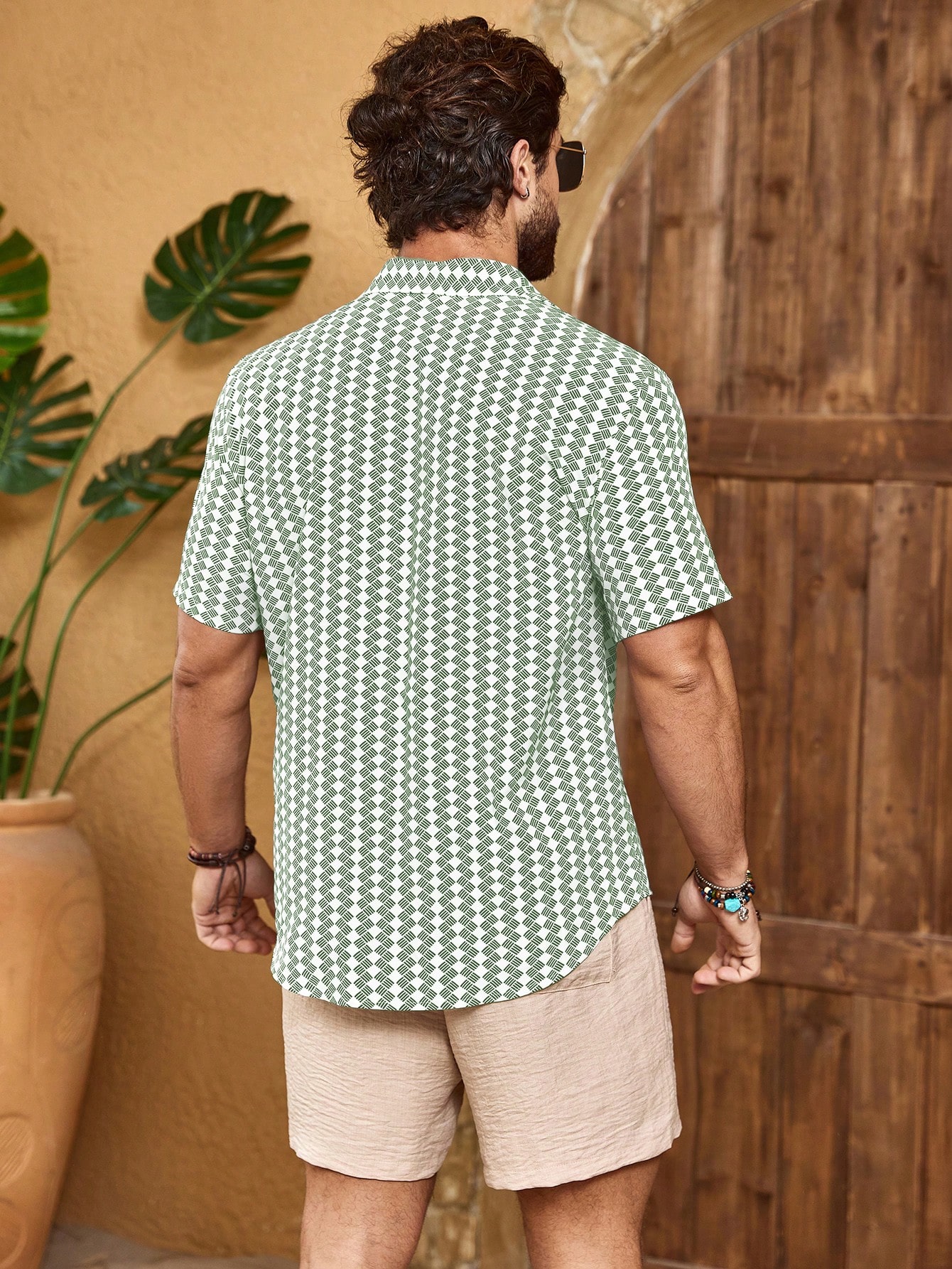 Manfinity KASUA Men??s Summer Geometric Printed Short Sleeve Casual Shirt
