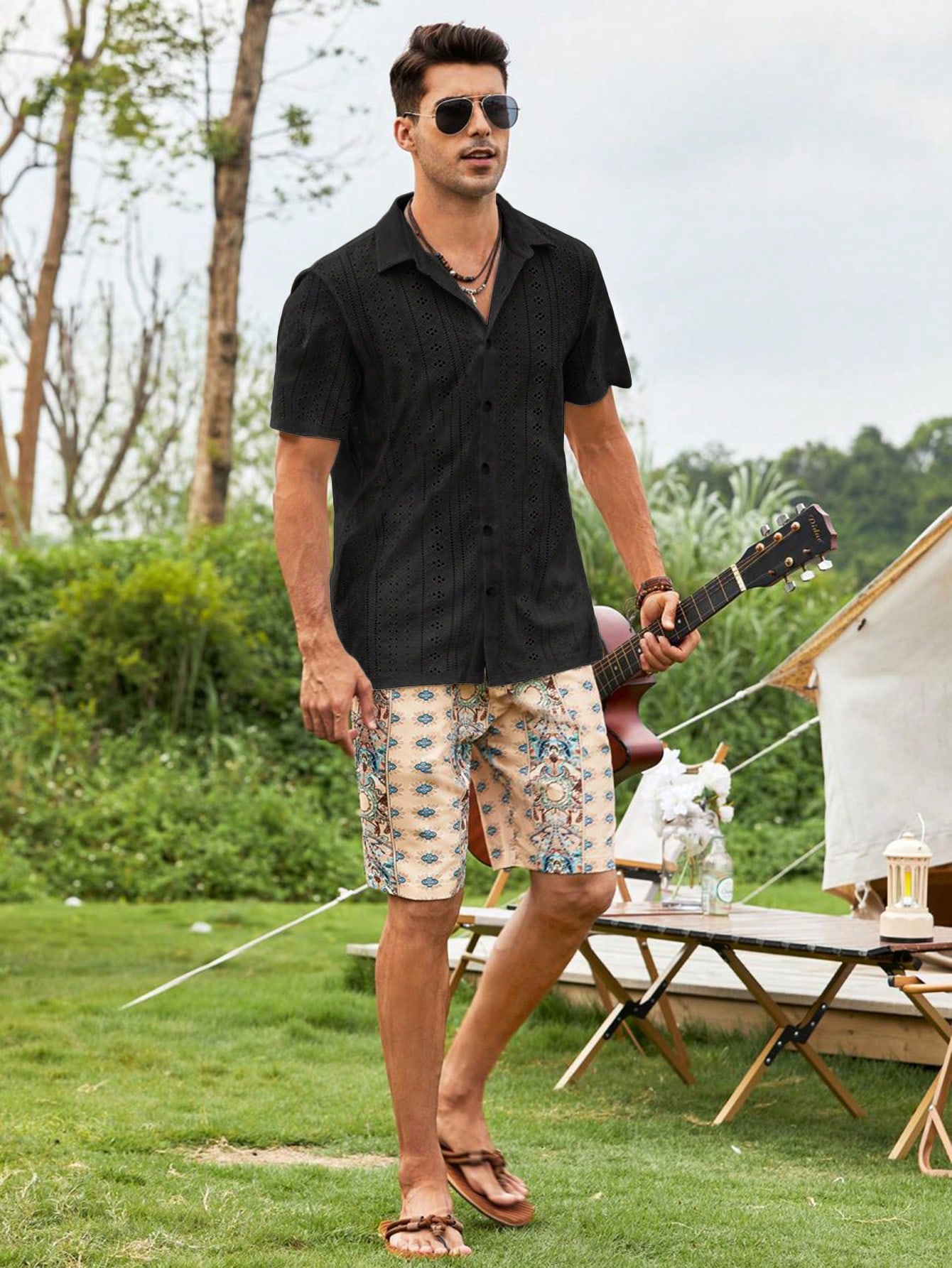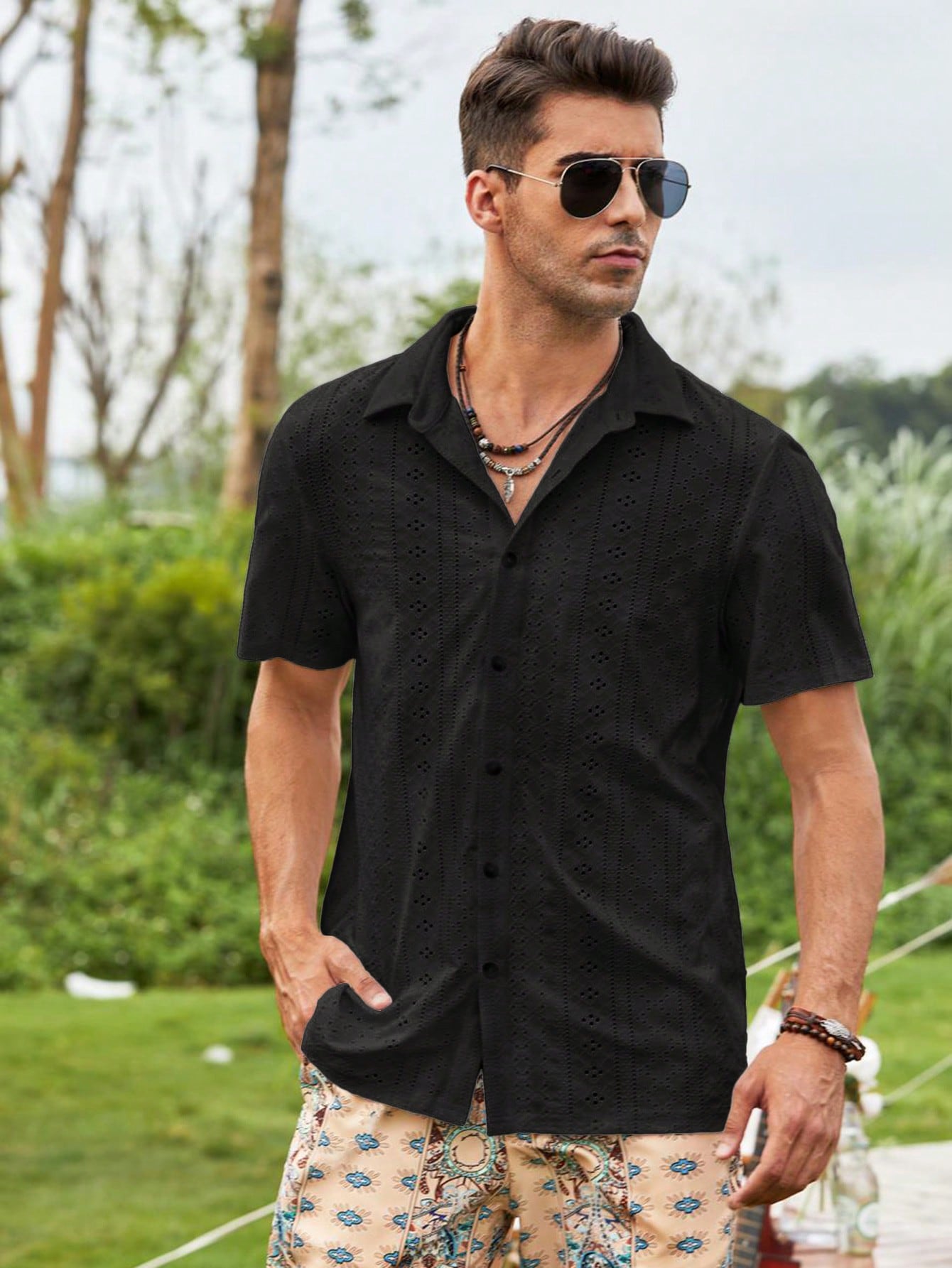 Manfinity KASUA Men??s Summer Solid Color Casual Loose Short-Sleeve Shirt