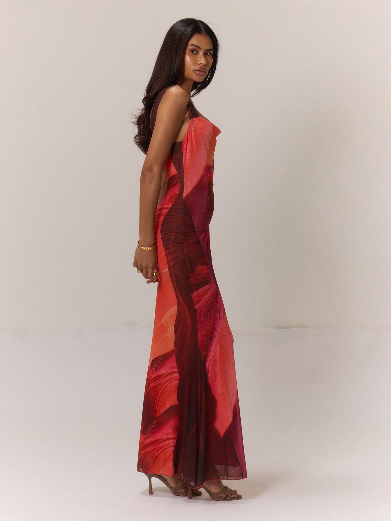 MUSERA Elegant Colorblock Print Mermaid Hem Maxi Dress