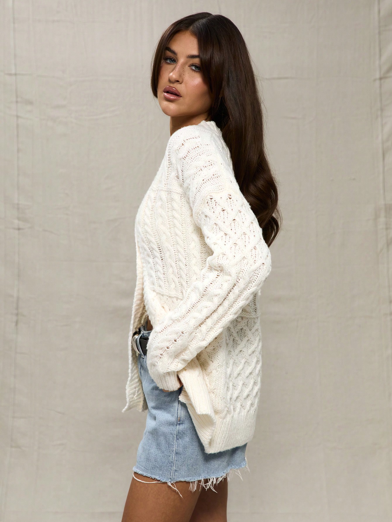 MUSERA Fall Clothes Cream Oversized Chunky Knit Cardigan