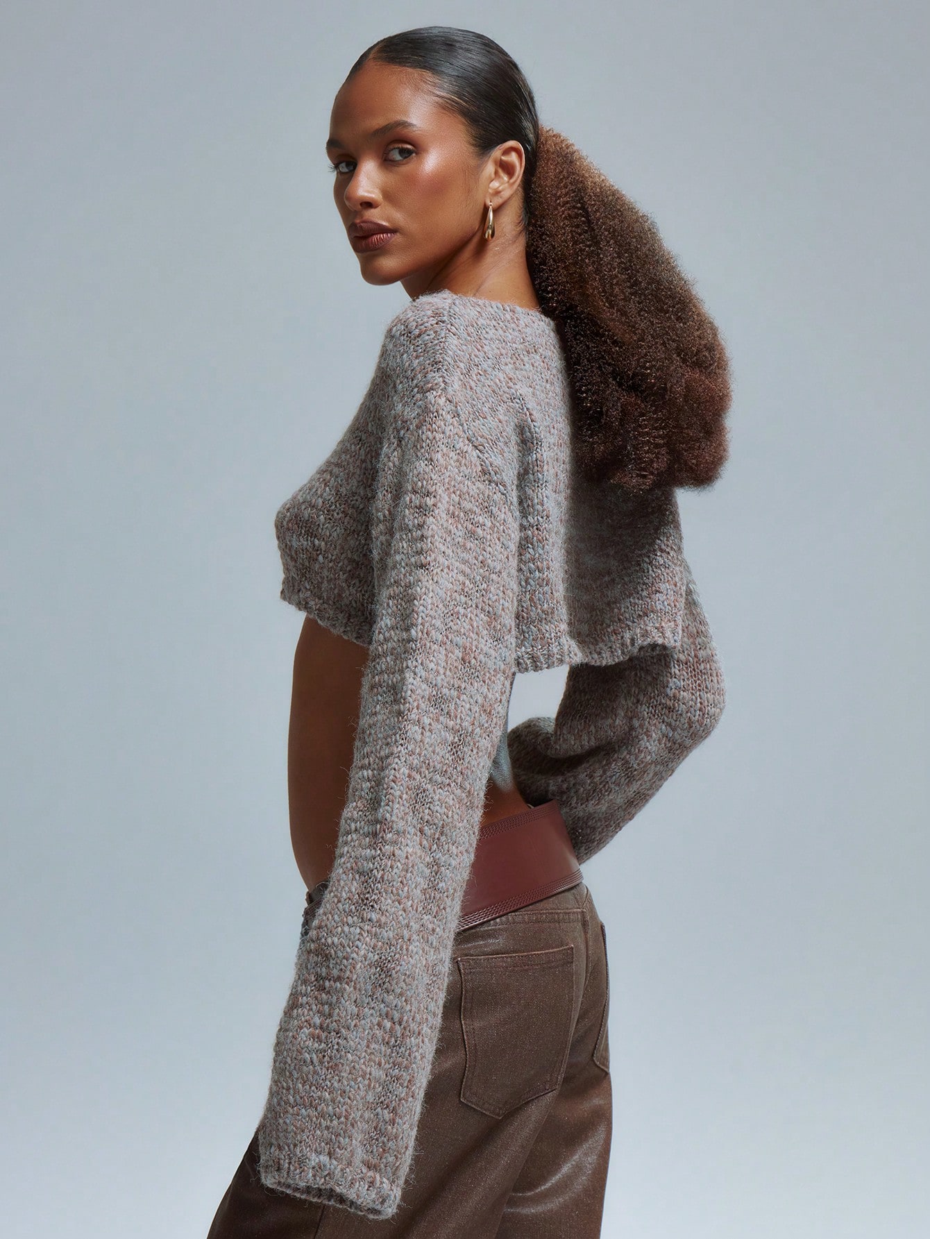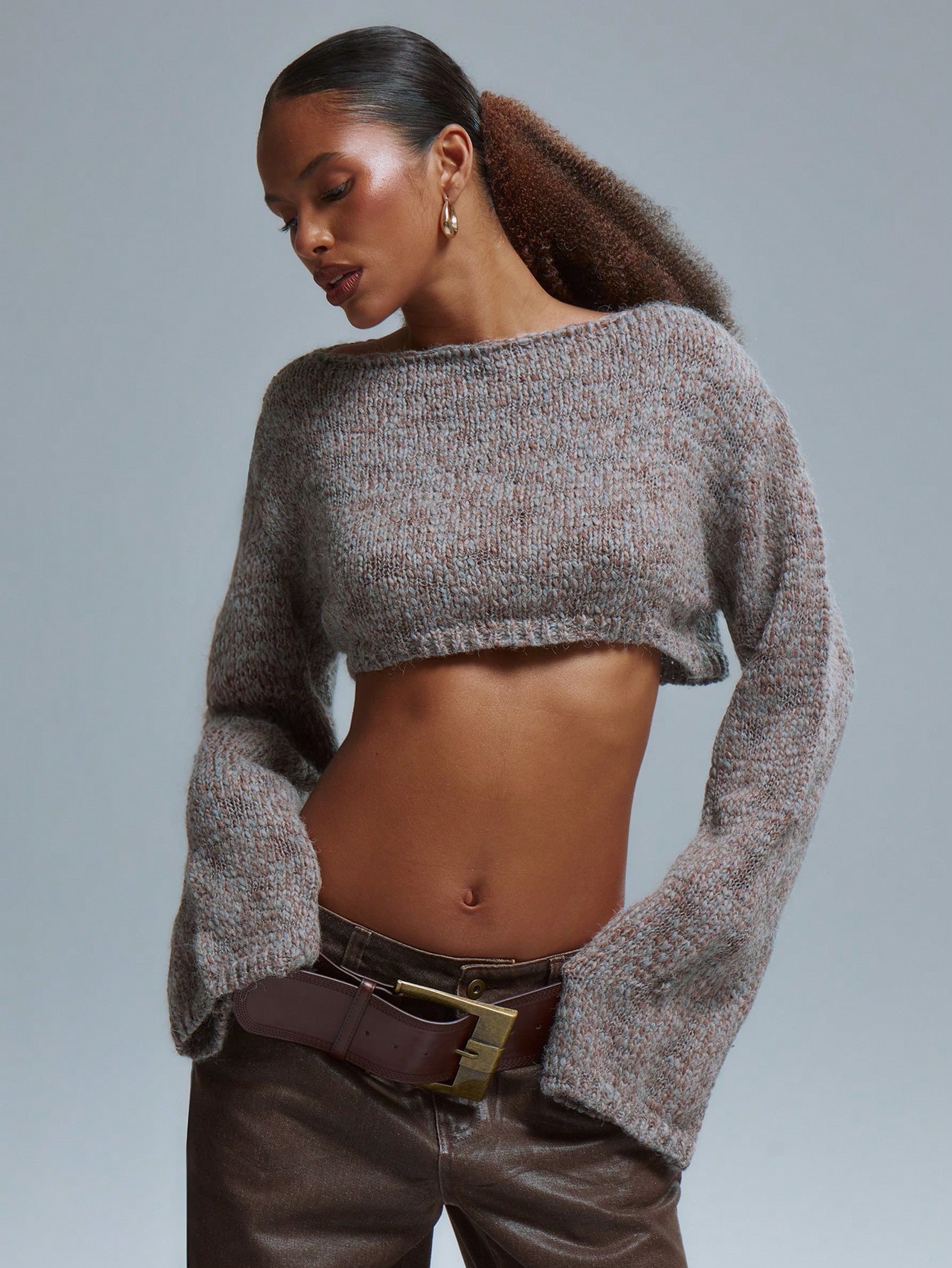 MUSERA MUSERA Slash Neck Crop Knitted Cropped Sweater