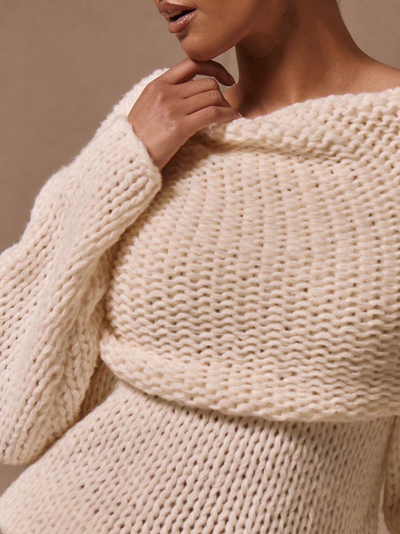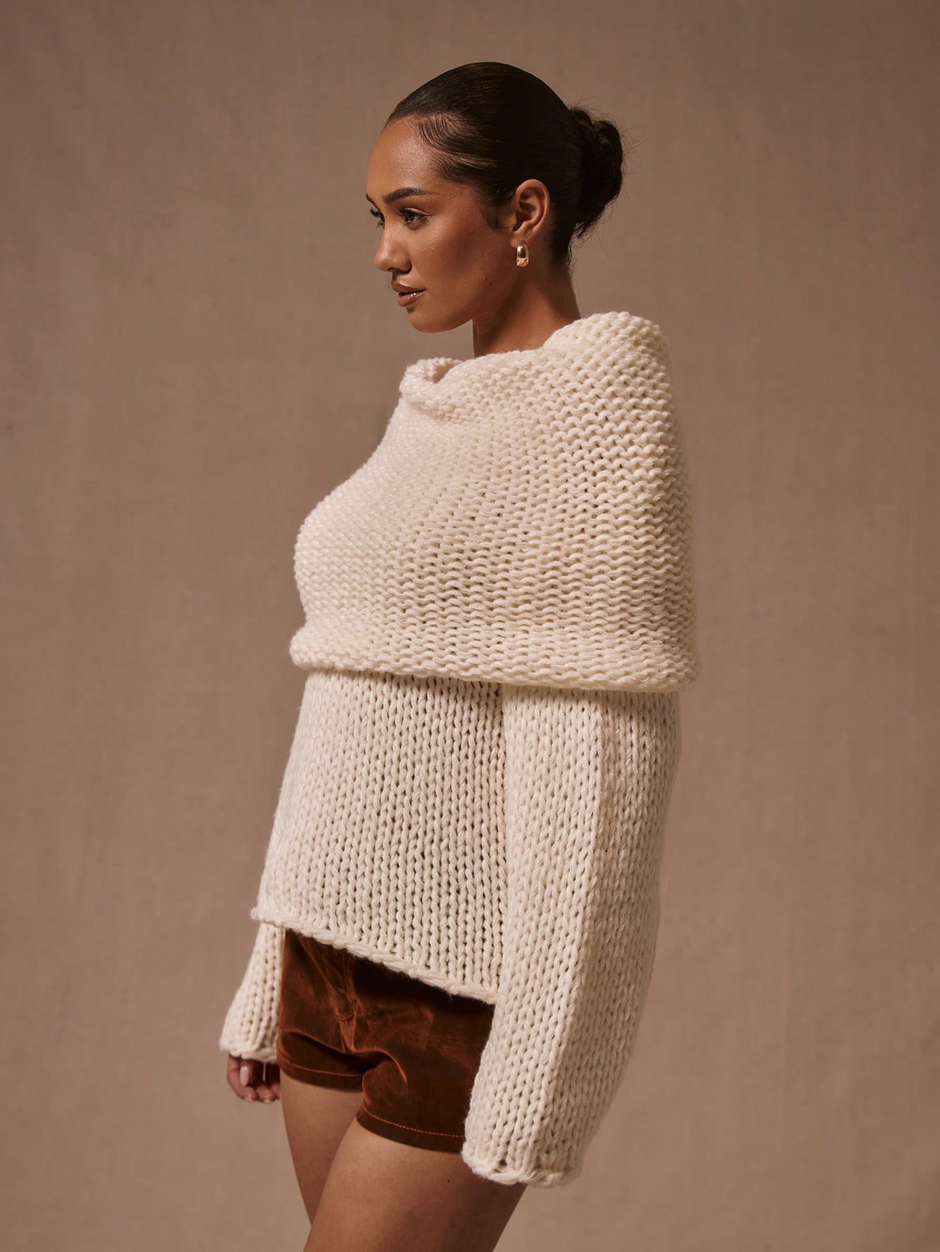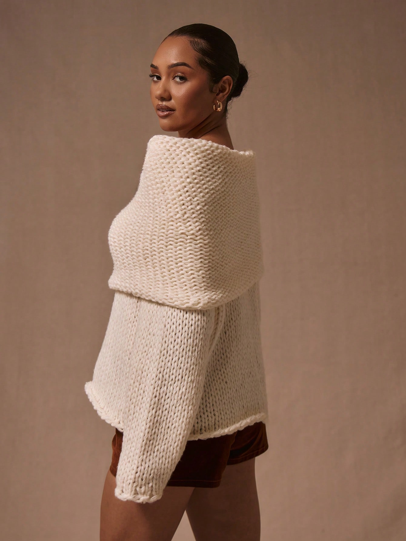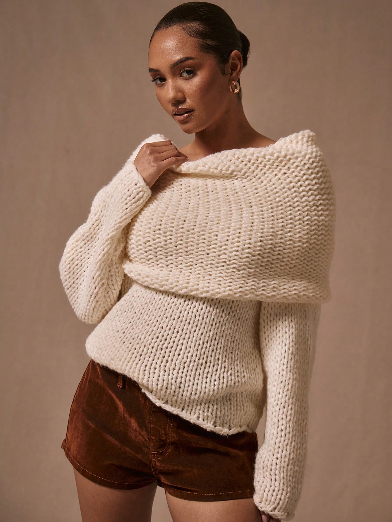 MUSERA Oversized Foldover Boat Neck Knit Jumper