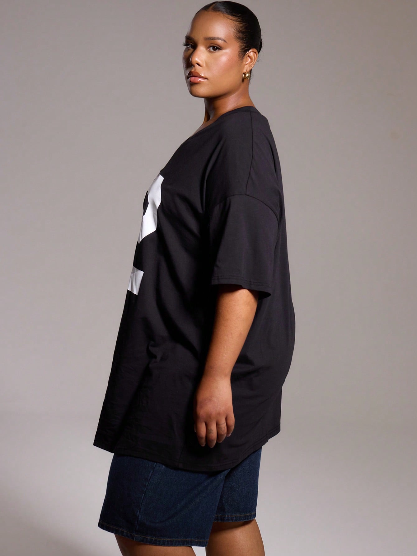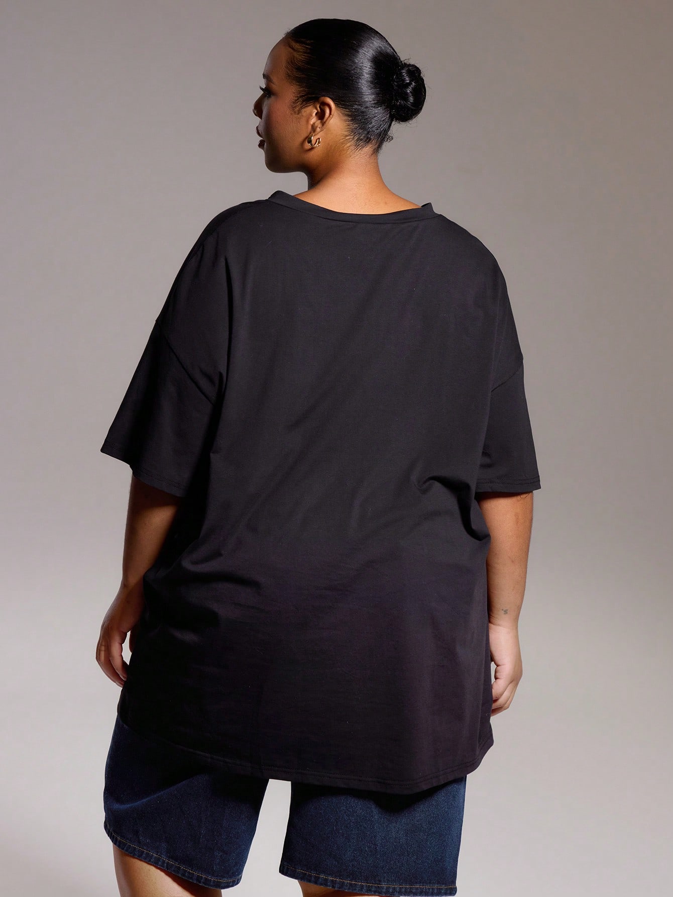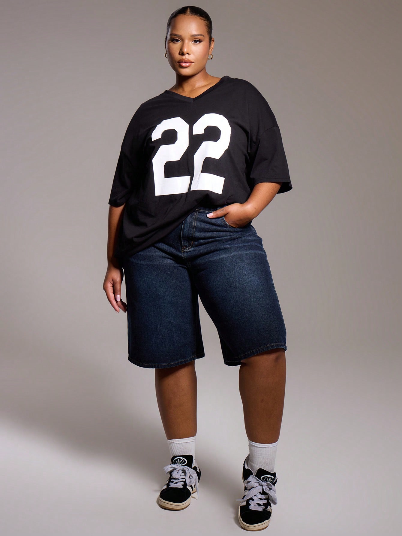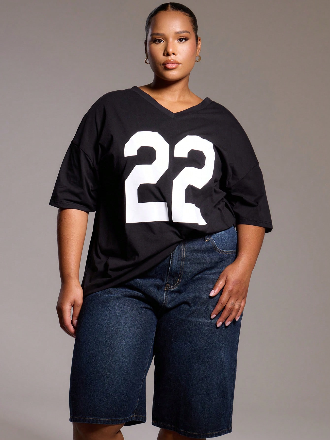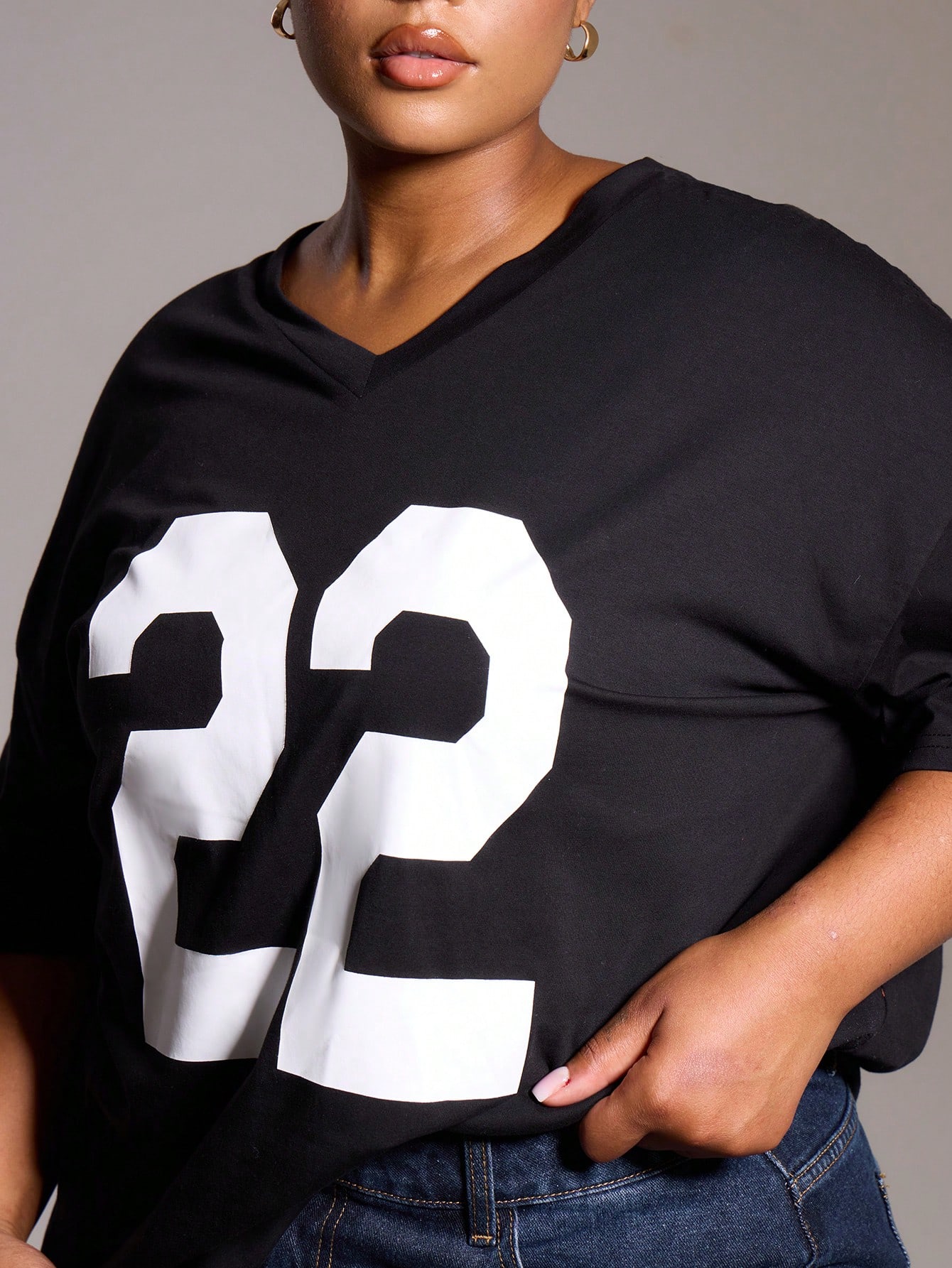 MUSERA Plus Size 22 Varsity Printed V Neck Short Sleeve T Shirt