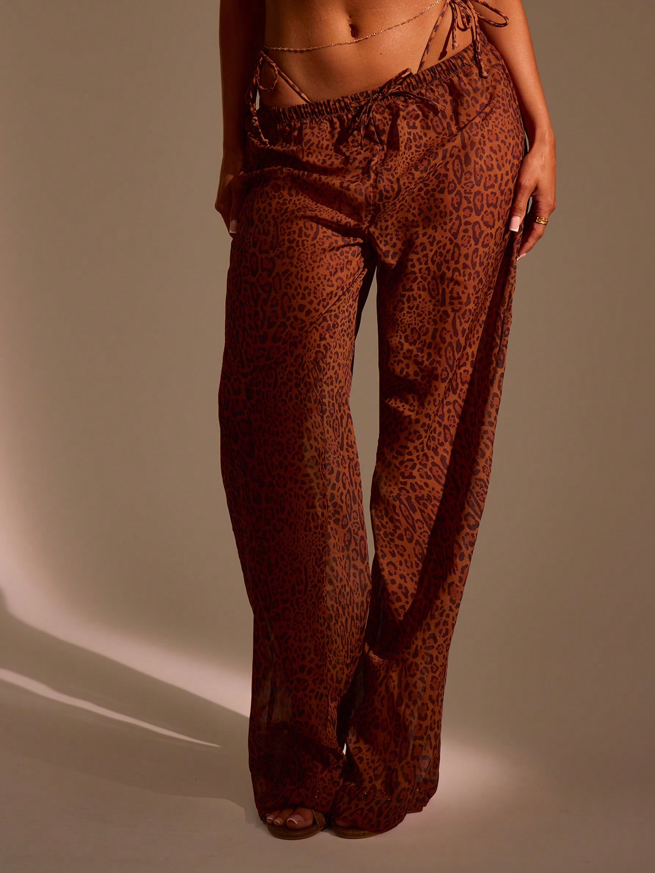 MUSERA Sheer Leopard Print Tie Waist Band Wide Leg Trousers Only